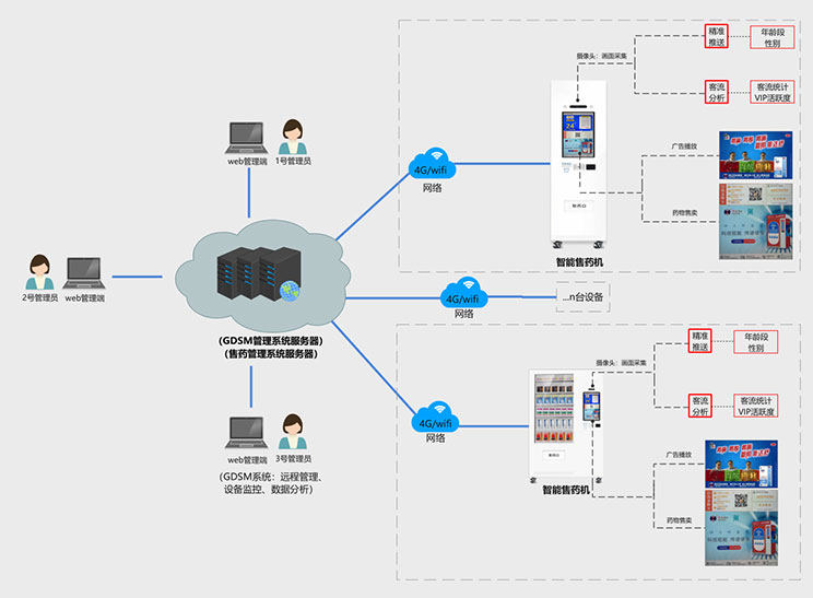 2、一機(jī)多用:商品自助售賣,廣告精準(zhǔn)推送,客流統(tǒng)計(jì)分析等。