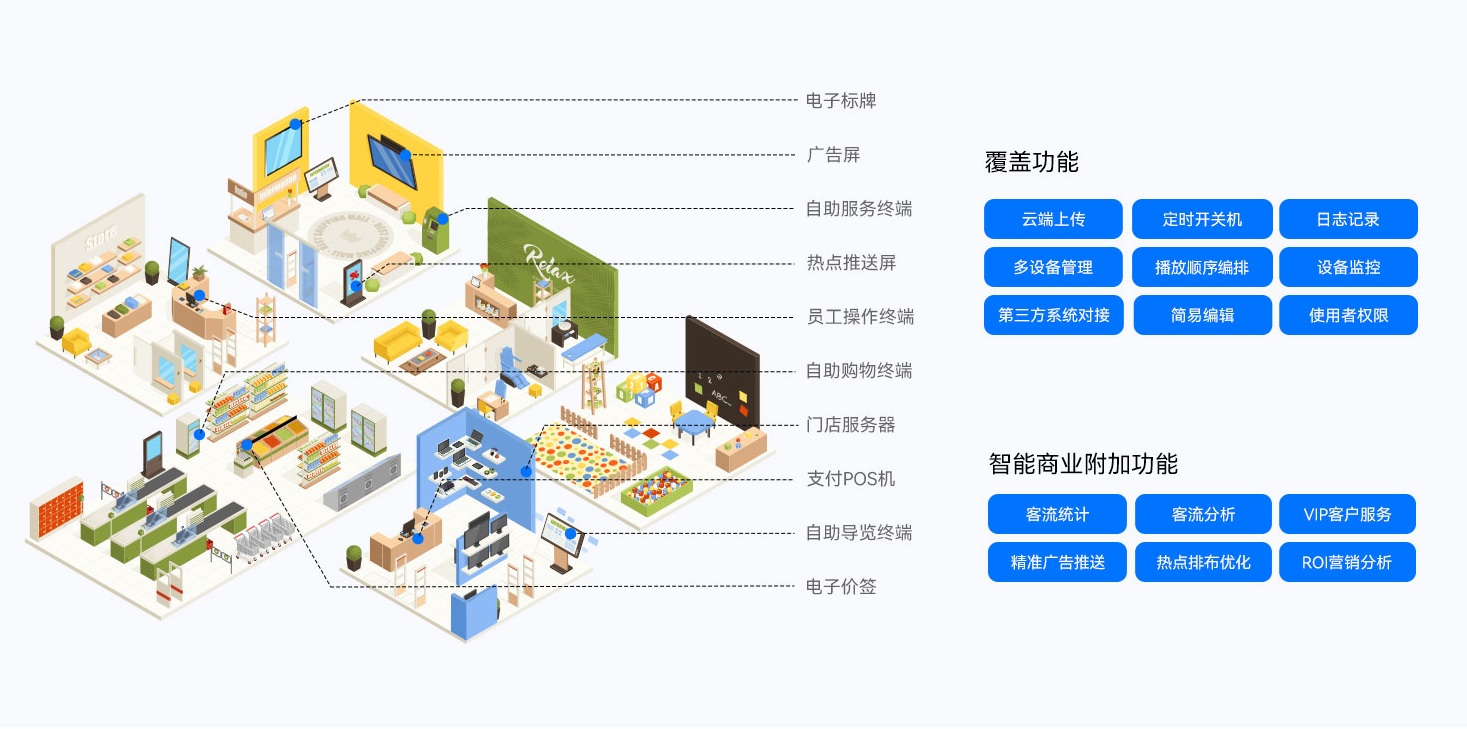 杰和智慧零售解決方案搭配杰和GDSM-ES智能零售管理系統(tǒng),為全球零售門店客戶提供了功能齊全的數(shù)字化運營管理工具,提供廣告顯示信息編輯、信息發(fā)布、AI識別、客戶分析和會員管理等功能,實現(xiàn)對設(shè)備、內(nèi)容、營銷、運營的綜合數(shù)智化管理能力,為精準(zhǔn)運營管理賦能。
