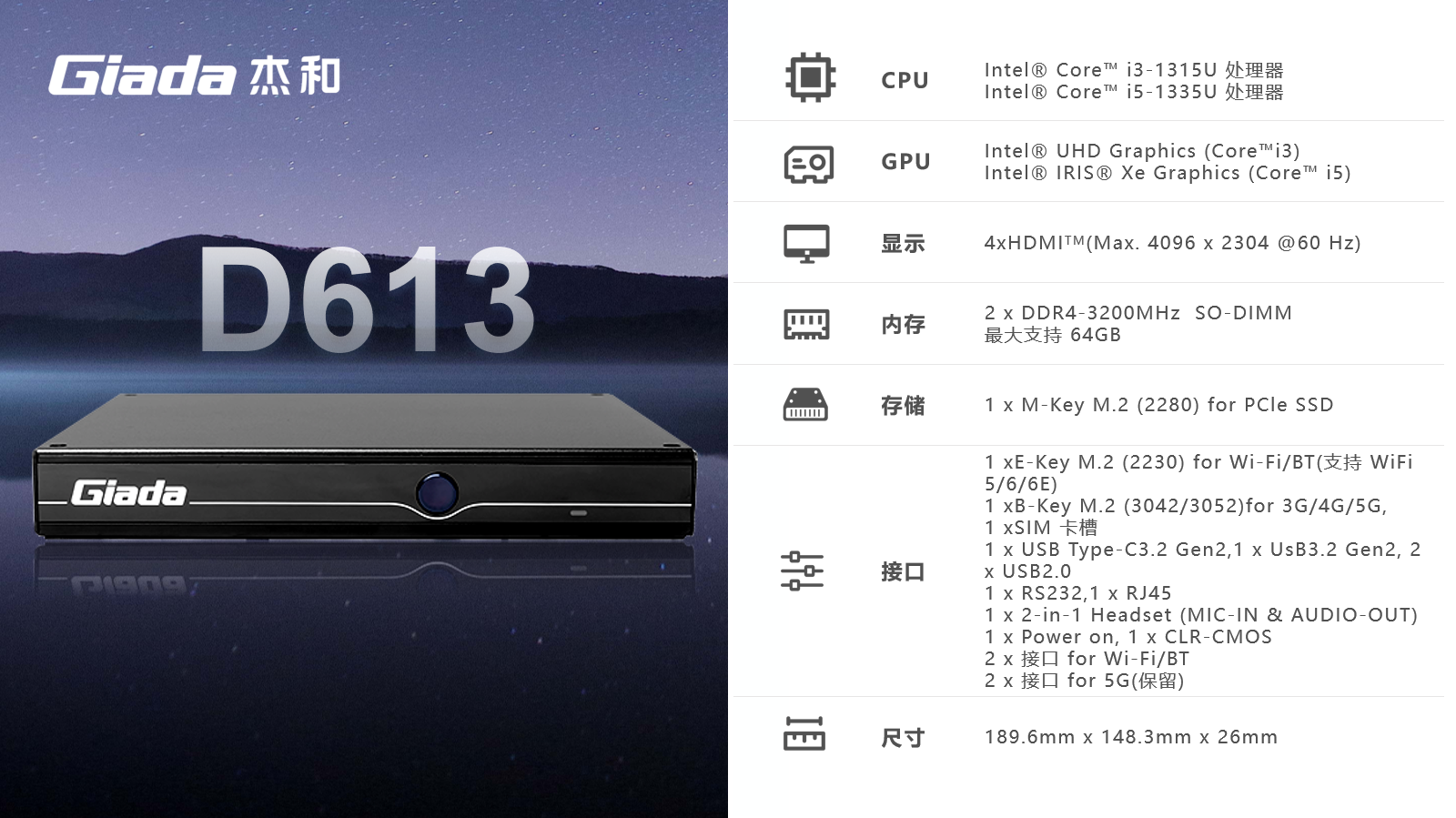 針對智慧零售對于數(shù)字化顯示的多屏控制需求,推出四屏4K數(shù)字標(biāo)牌播放器D613,搭載Intel® CoreTM i3-1315U/i5-1335U 處理器,具備4 x HDMI (MAX.4096 X2304@60 Hz)接口,可同時控制4臺顯示器,實現(xiàn)拼接、獨顯、復(fù)制顯示,擁有60HZ視頻編碼和解碼能力,實現(xiàn)4K 高清流暢播放畫面,能為消費者提供身臨其境的視覺體驗,成為數(shù)字標(biāo)牌、拼接屏、廣告一體機的理想選擇。