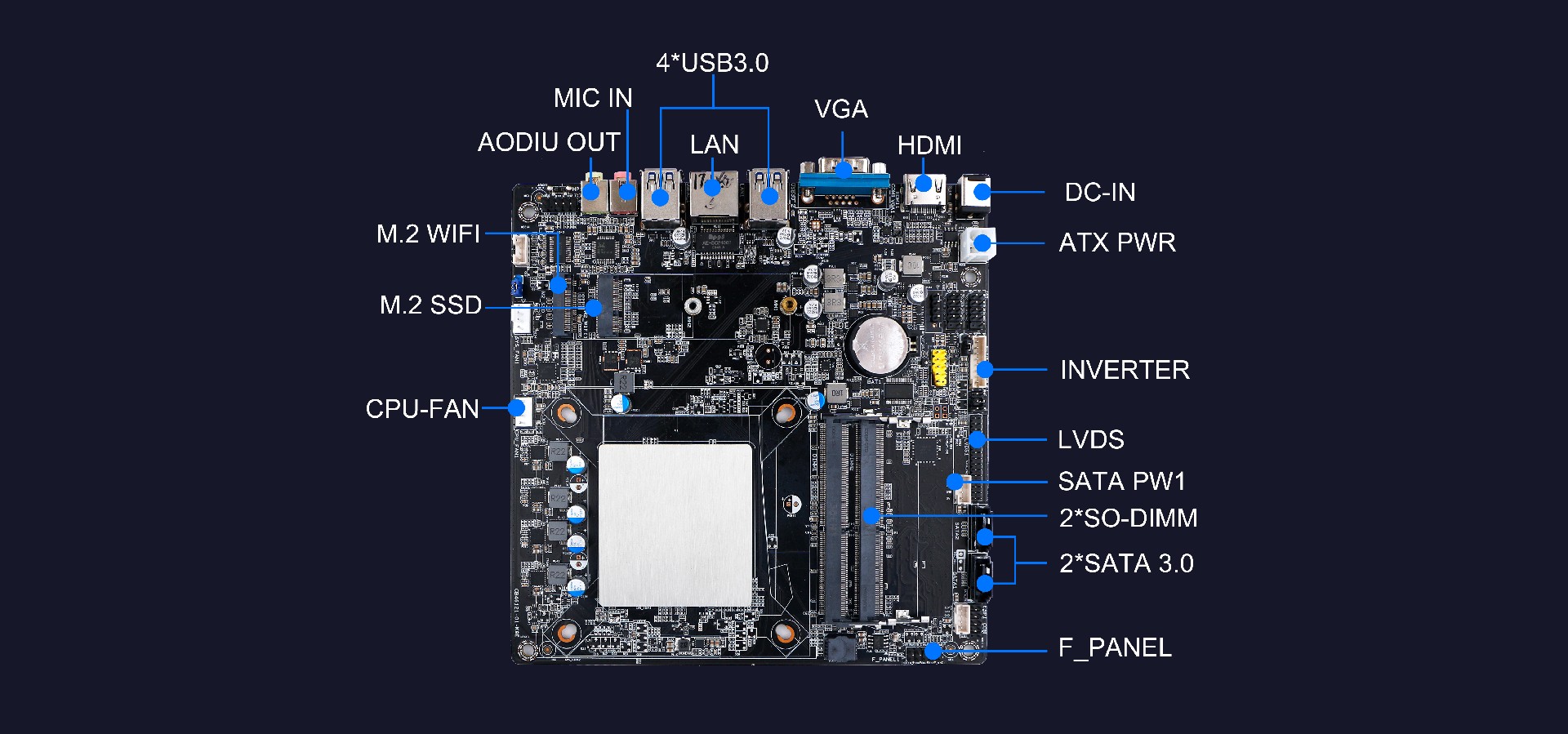 CB4-6121主板采用了170*170mm Thin mini-ITX版型設(shè)計,致力于打造更加緊湊和精致的外觀,這種規(guī)格常用于一體機設(shè)計。