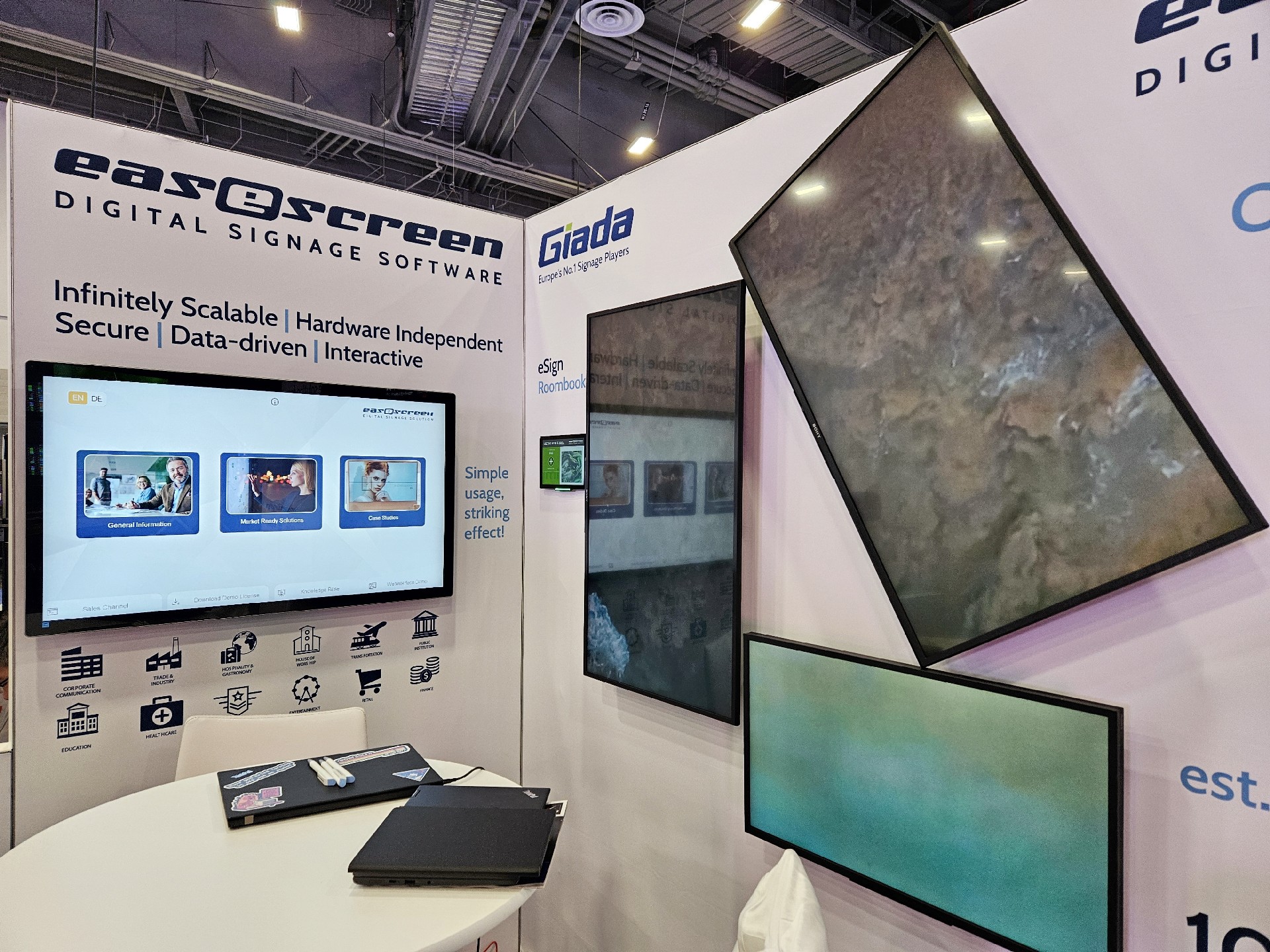 杰和科技Giada作為全球數(shù)字標(biāo)牌領(lǐng)域的領(lǐng)導(dǎo)品牌,產(chǎn)品應(yīng)用范圍涵蓋全球大型連鎖店,購(gòu)物中心,學(xué)校,醫(yī)療機(jī)構(gòu),企業(yè)辦公室等。本次展會(huì),杰和科技牽手合作伙伴easescreen,展示一系列創(chuàng)新數(shù)字標(biāo)牌解決方案,帶來(lái)強(qiáng)勢(shì)產(chǎn)品及最新產(chǎn)品,現(xiàn)場(chǎng)收獲超高人氣。