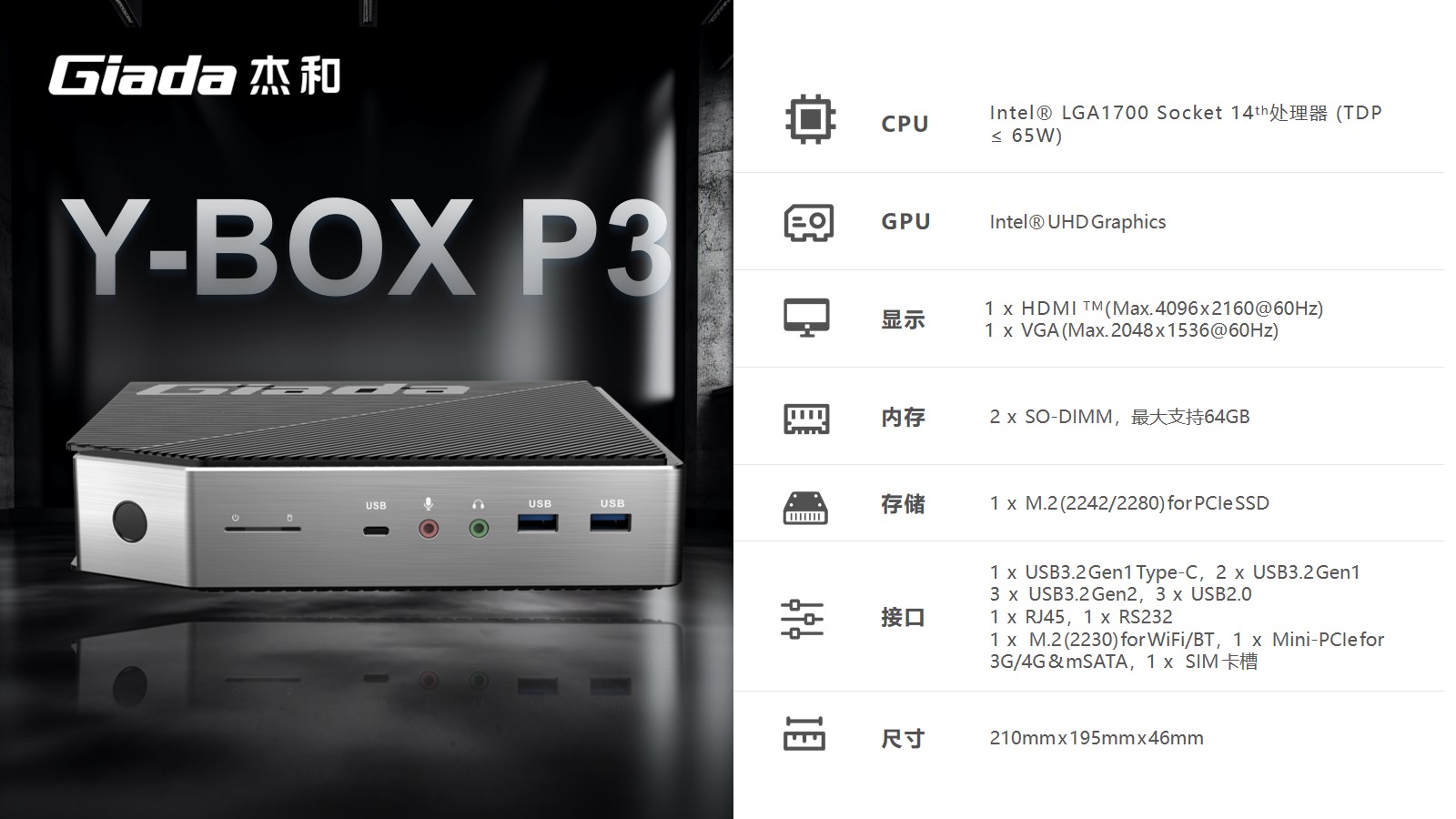 支持指紋解鎖,支持type-c接口,支持PD協(xié)議的27W快充。杰和科技最新云終端Y-BOX P3采用Intel® LGA 1700 Socket CPU插槽設(shè)計,支持intel 12~14代酷睿系列處理器,配備i7-14700處理器,20核28線程,最大睿頻頻率為5.4GHz,處理器基礎(chǔ)功耗 65W。采用雙通道筆記本內(nèi)存槽設(shè)計,最大支持容量可達64GB,最高支持DDR5-5600MHz頻率,比 DDR4 至高標準數(shù)據(jù)速度 3200MT/S多傳輸 1.75 倍。