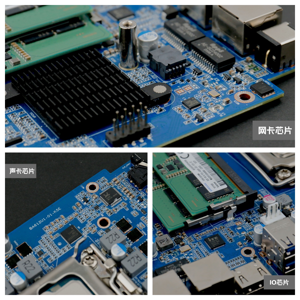 杰和桌面云終端Y-BOX P3主板采用的是6相供電,為H610入門級芯片組,CPU附近都分布了相關(guān)的芯片,在千兆網(wǎng)口附近有2個網(wǎng)卡芯片RTL 8111H,在主板背面的音頻接口附近可以看到1個經(jīng)典的“小螃蟹”ALC897 聲卡芯片,聲卡芯片附近有一個I/0 芯片ITE8613E-LX。