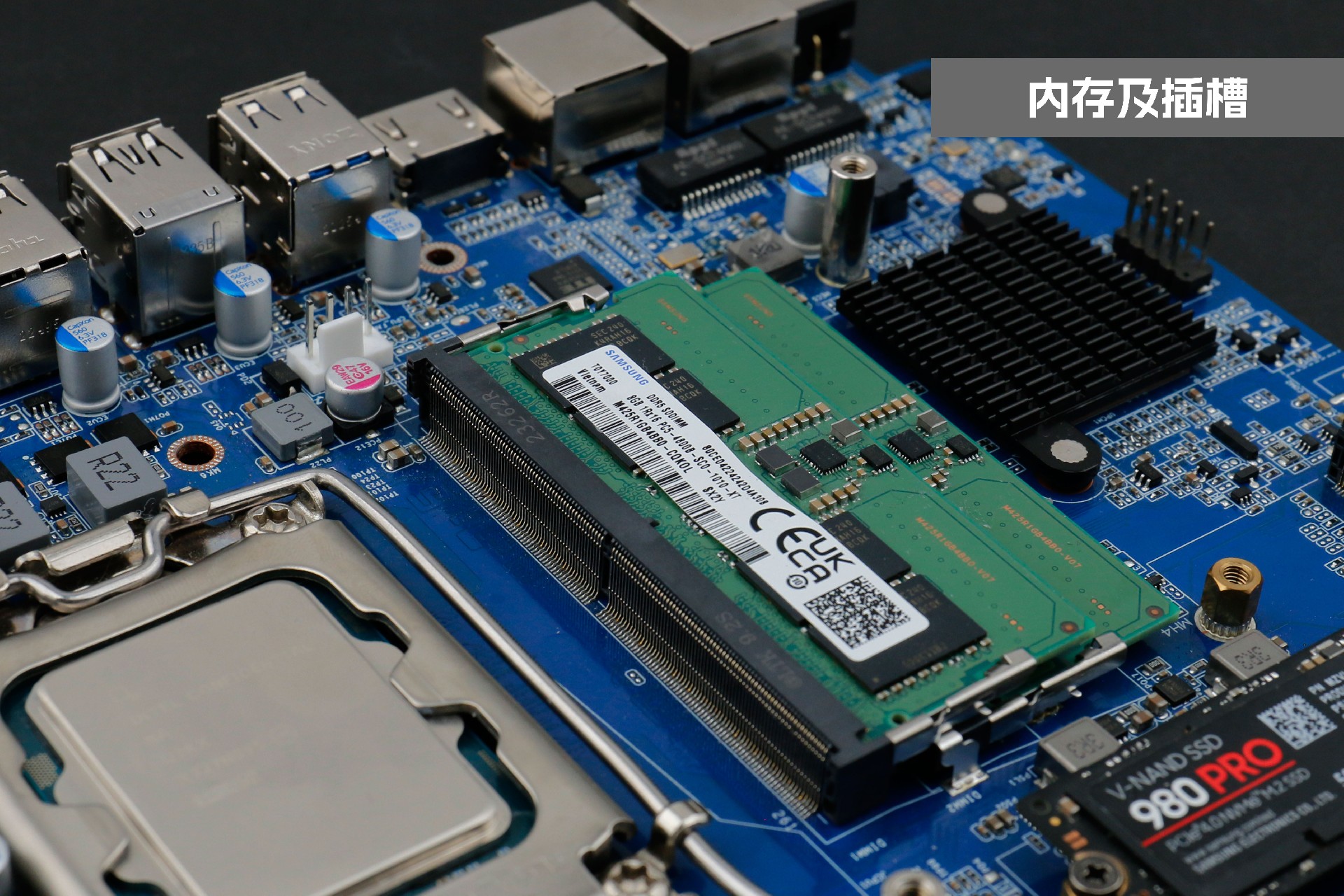 杰和桌面云終端Y-BOX P3主板中部是內(nèi)存插槽,采用雙通道筆記本內(nèi)存槽設(shè)計(jì),最大支持容量可達(dá)64GB,最高支持DDR5-5600MHz頻率,比 DDR4 至高標(biāo)準(zhǔn)數(shù)據(jù)速度 3200MT/S多傳輸 1.75 倍,橫插的形式可以減少主板的占用體積,使整體機(jī)身更緊湊,內(nèi)存頂部的風(fēng)扇起到高效散熱的作用。