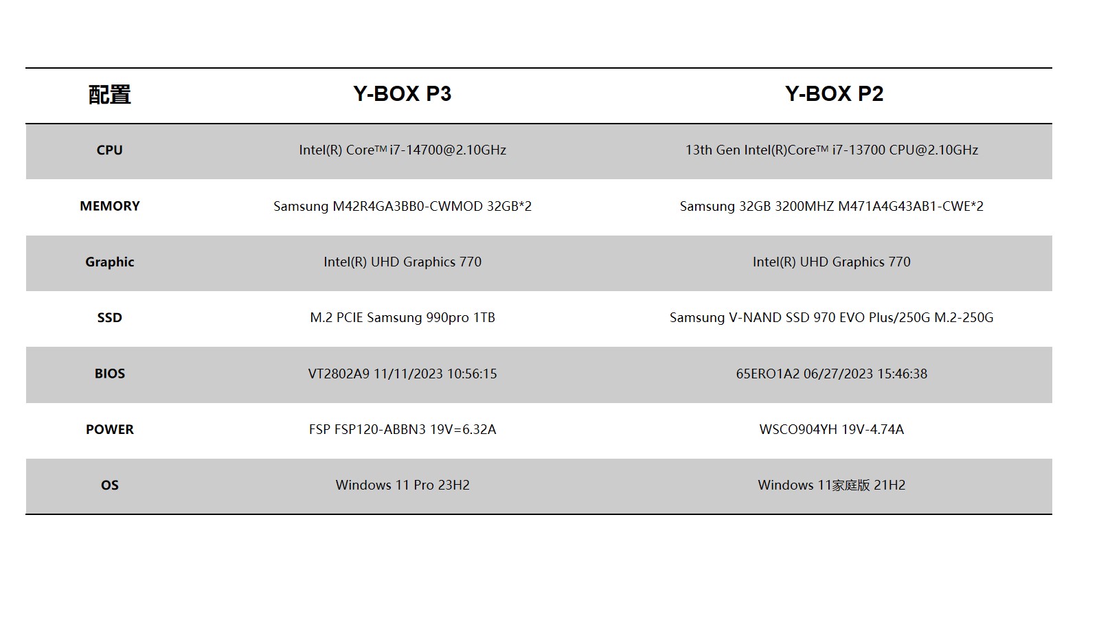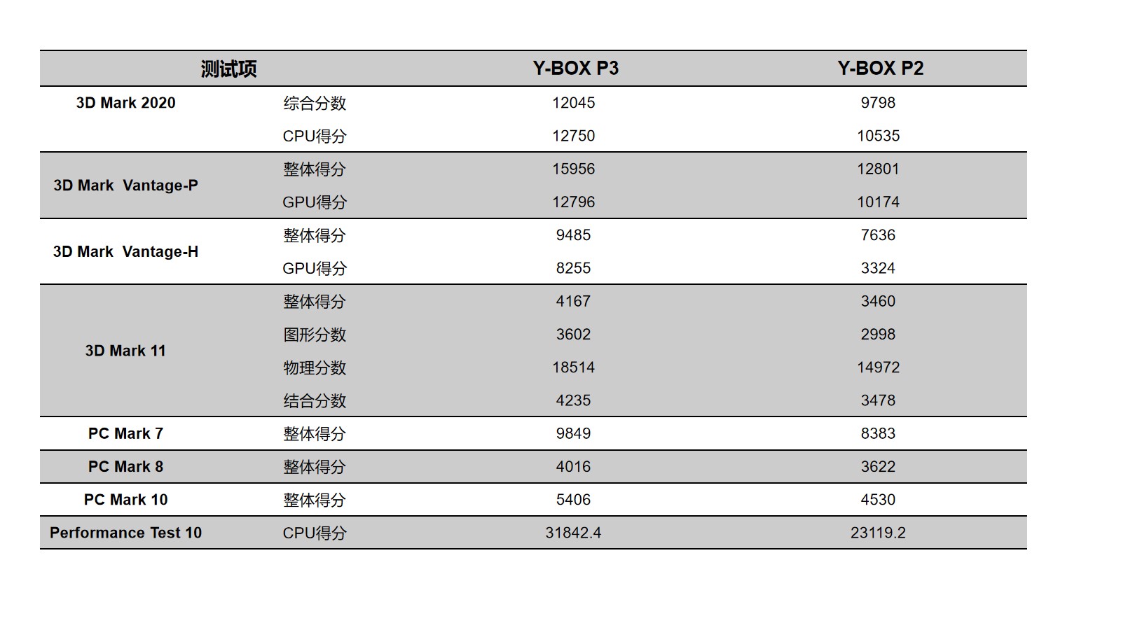 作為Y-BOX P2的迭代產(chǎn)品,我們選取了以下配置,將Y-BOX P3與Y-BOX P2進(jìn)行對比分析,結(jié)論先行:兩款產(chǎn)品跑分?jǐn)?shù)據(jù)表示,Y-BOX P3的跑分?jǐn)?shù)據(jù)及穩(wěn)定性能明顯領(lǐng)先Y-BOX P2。