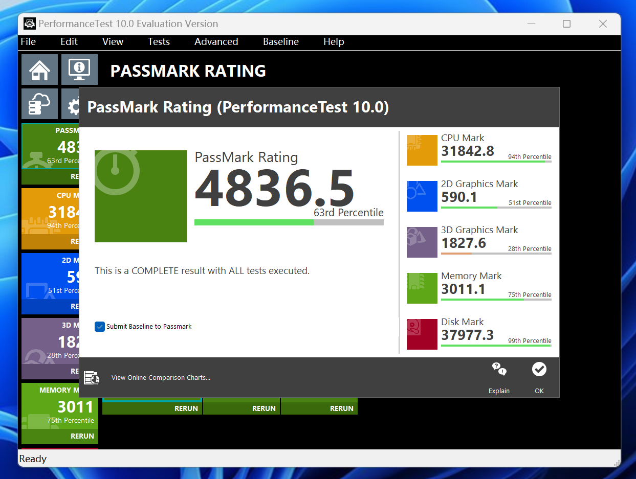 本次測試中,Y-BOX P3綜合得分4836.5,CPU Mark得分31842.8,無懼處理高負(fù)載任務(wù)。