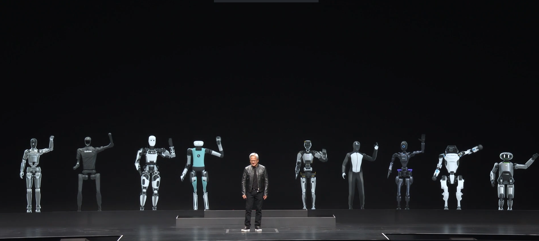 如果您近期注意到英偉達(dá)CEO黃仁勛的兩次演講,會(huì)發(fā)現(xiàn)開場(chǎng)前后位于他身后的9位人形機(jī)器人。這9位人形機(jī)器人皆由英偉達(dá)芯片和廠商合作創(chuàng)造而來(lái)。