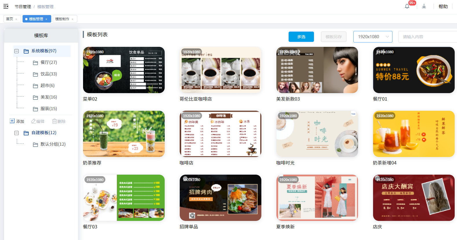 提供海量的模板庫,適應(yīng)不同屏幕尺寸,可直接編輯包括圖片、音頻、視頻、文檔、混播、網(wǎng)頁等元素,滿足各種場(chǎng)景需求。