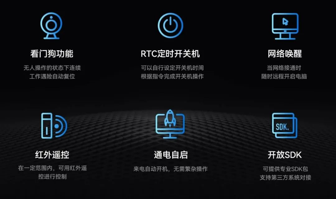 通過定時(shí)開關(guān)機(jī)、看門狗計(jì)時(shí)器、RTC宕機(jī)自檢、紅外遙控和局域網(wǎng)喚醒等功能,實(shí)現(xiàn)設(shè)備綠色運(yùn)行。