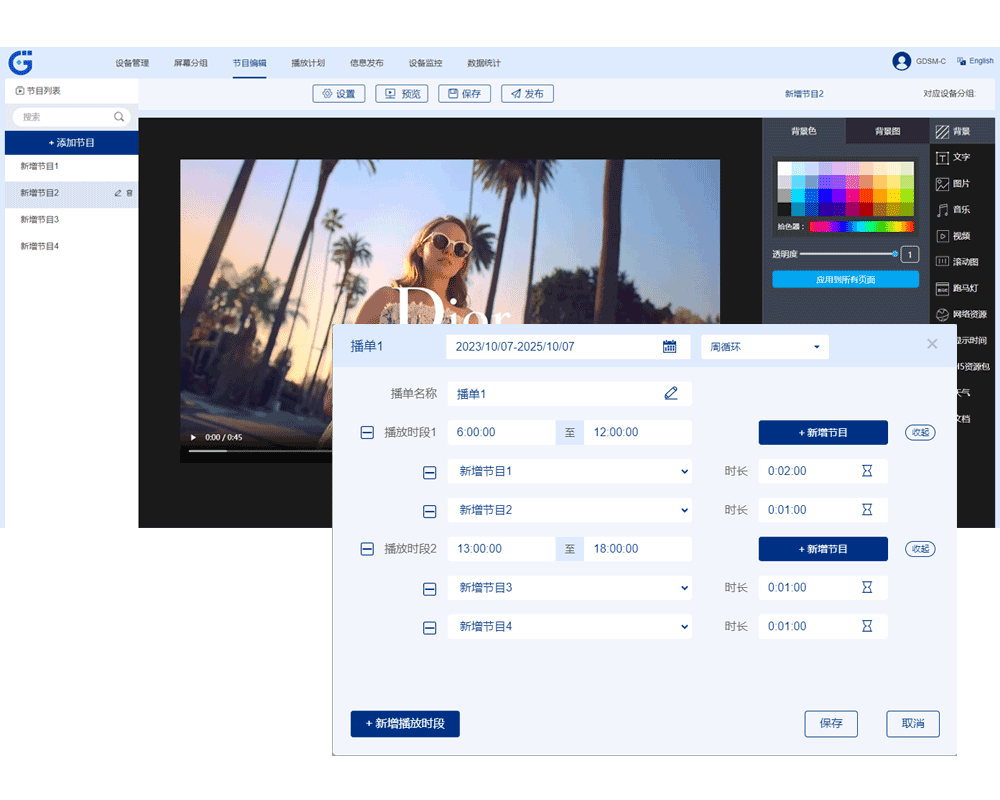 現(xiàn)場我們還將結(jié)合杰和科技信息發(fā)布系統(tǒng)GDSM-C系統(tǒng),為大家演示信發(fā)系統(tǒng)聯(lián)合硬件產(chǎn)品,是如何為商業(yè)廣告賦能。該系統(tǒng)支持畫面并行、組合播放,分屏/拼接等信息技術(shù),生動(dòng)靈活的展示廣告內(nèi)容,可兼容多種設(shè)備,支持各類數(shù)字標(biāo)牌、單屏、拼接多屏等技術(shù)。