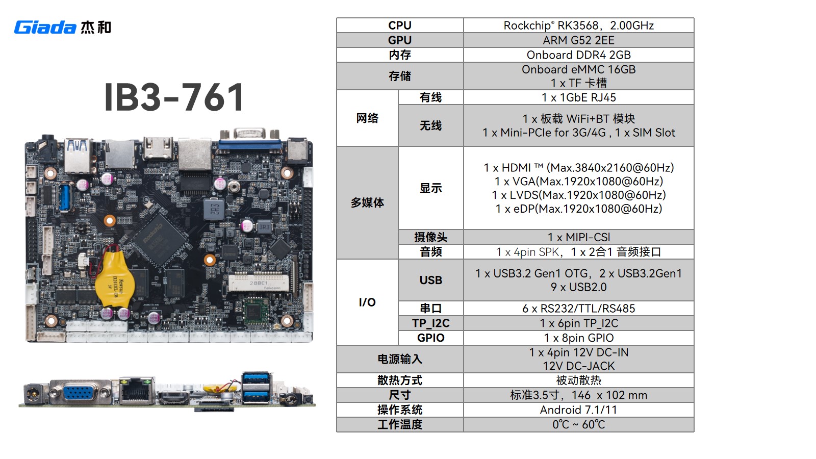 若側(cè)重基礎監(jiān)控、車牌識別與多屏信息展示,IB3-761又是一個新的選擇,可在保證性能的同時優(yōu)化項目成本。它搭載了RK3568處理器,1TOPS NPU 與雙路4K顯示能力,支持4K@60fps H.265/ H.264/ VP9/ VP8視頻解碼,在停車場智能化改造與道路監(jiān)控中表現(xiàn)突出。