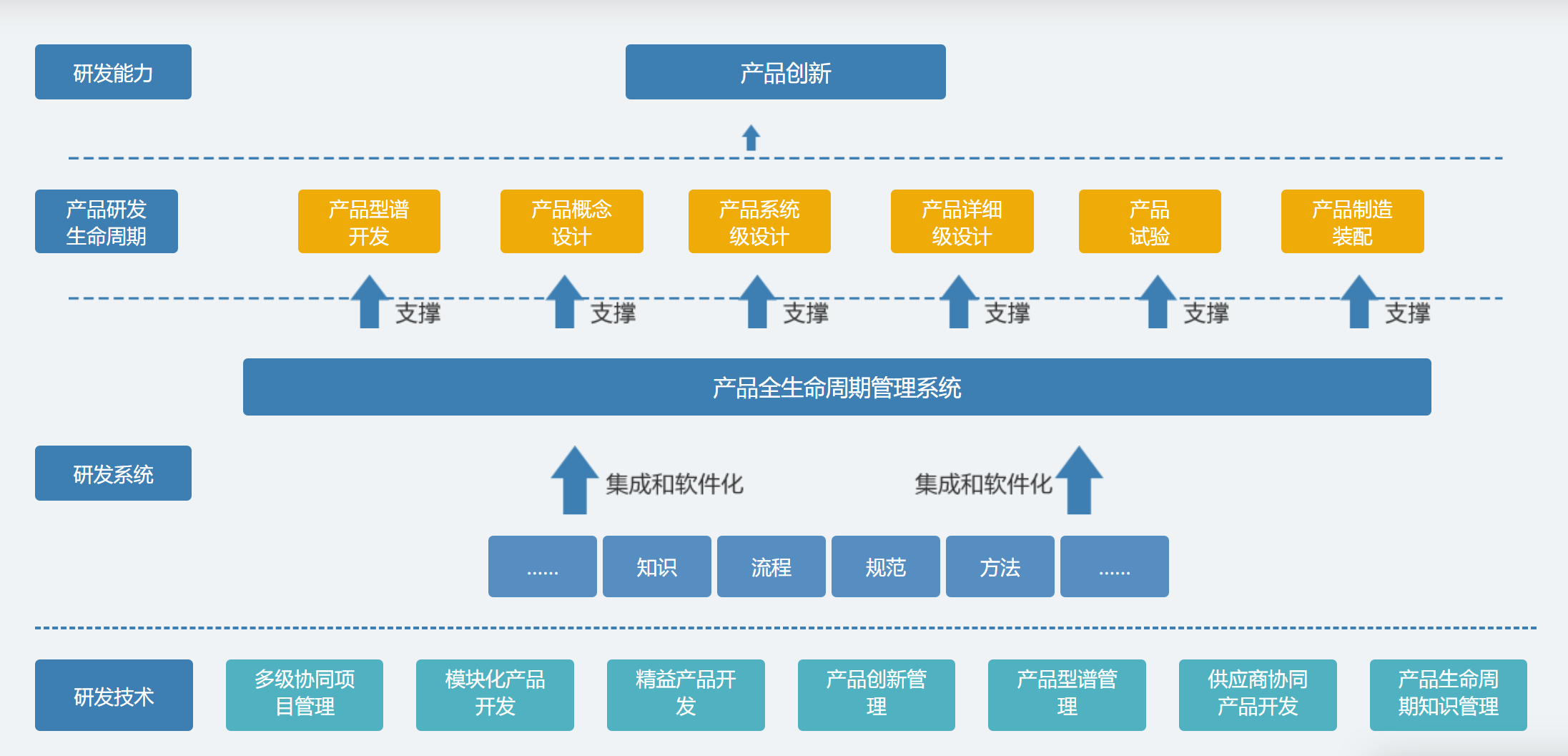 PLM是在 PDM基礎(chǔ)上發(fā)展起來(lái)的新一代產(chǎn)品創(chuàng)新和協(xié)同管理的解決方案,它是對(duì)產(chǎn)品從用戶(hù)需求、產(chǎn)品設(shè)計(jì)、制造裝配、維護(hù)服務(wù)到報(bào)廢回收等整個(gè)生命周期所涉及的產(chǎn)品、過(guò)程、資源進(jìn)行管理的技術(shù)。