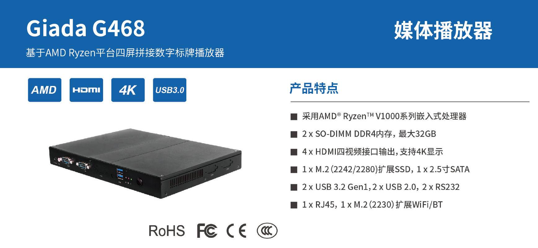 杰和除了為廣大商戶提供數(shù)字化智慧運(yùn)營(yíng)系統(tǒng)軟件,同時(shí)也配套智能硬件產(chǎn)品,幫助商戶快速地建立起數(shù)字化智慧門店,提供硬軟一站式服務(wù)。杰和G468可滿足全場(chǎng)景全行業(yè)的廣告投放、招牌商品推薦、信息發(fā)布等應(yīng)用場(chǎng)景。