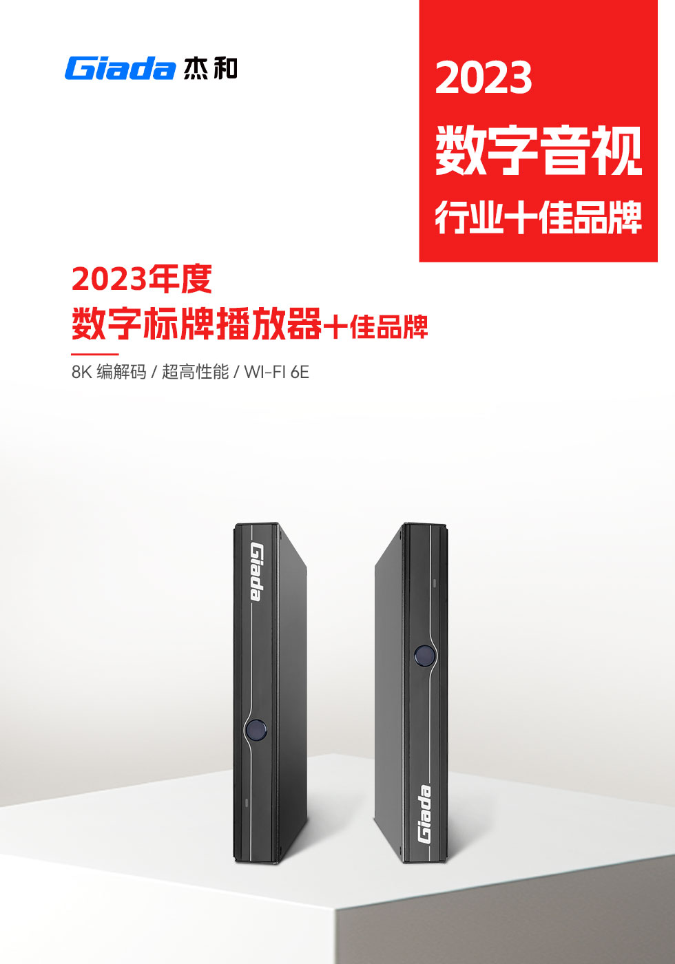 2023年接近尾聲,新舊更替之際,第15屆DAV數(shù)字音視工程網(wǎng)“數(shù)字音視行業(yè)十佳品牌評(píng)選活動(dòng)”獲獎(jiǎng)名單新鮮出爐。杰和科技在此次評(píng)選活動(dòng)中,榮獲“2023年度商顯主板十佳品牌”、“2023年度數(shù)字標(biāo)牌播放器十佳品牌”兩項(xiàng)大獎(jiǎng),Giada杰和科技已連續(xù)四年登上同一榜單。