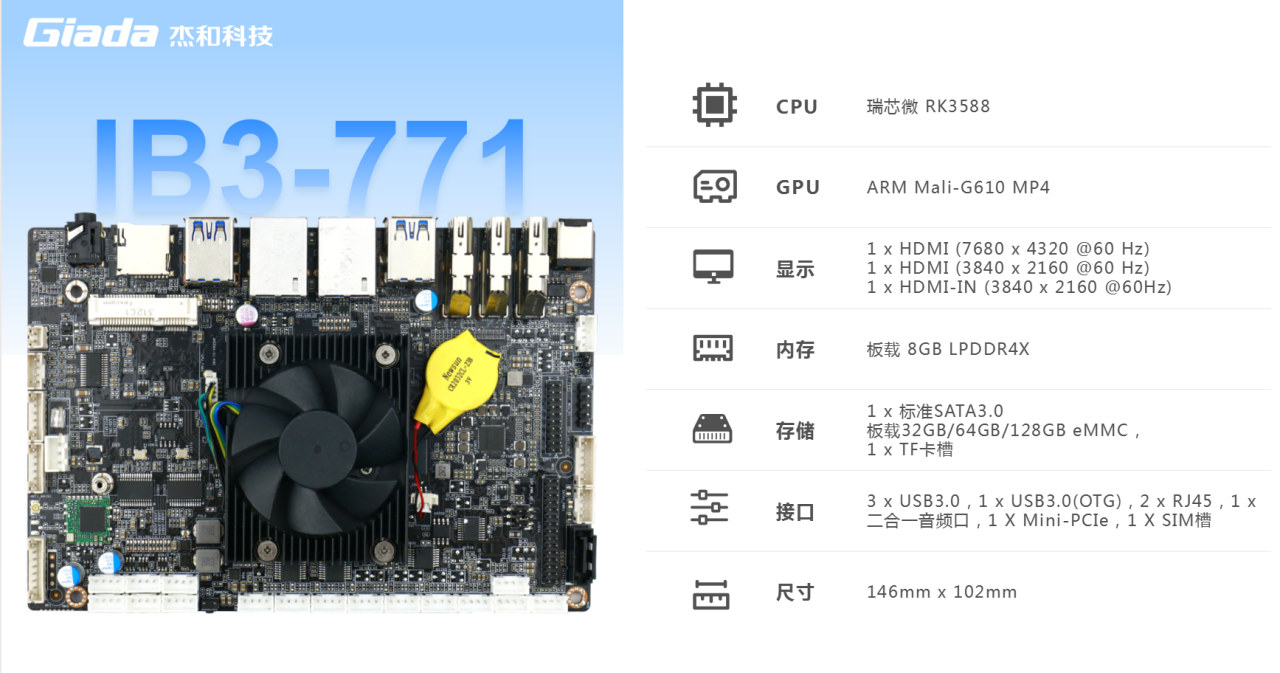杰和主板IB3-771搭載瑞芯微RK3588八核64位處理器,內(nèi)置6TOPS算力的NPU,具備高算力、內(nèi)存大、超強(qiáng)多媒體、多重?cái)U(kuò)展等技術(shù)優(yōu)勢(shì)。滿足8k超高清視頻的顯示需求,還支持主流深度學(xué)習(xí)框架,為各類 AIOT 應(yīng)用場(chǎng)景提供更優(yōu)的性能表現(xiàn),支持機(jī)器人、邊緣計(jì)算、智能NVR、智能汽車、智慧大屏、AR/VR、智能自助終端場(chǎng)景的廣泛應(yīng)用。