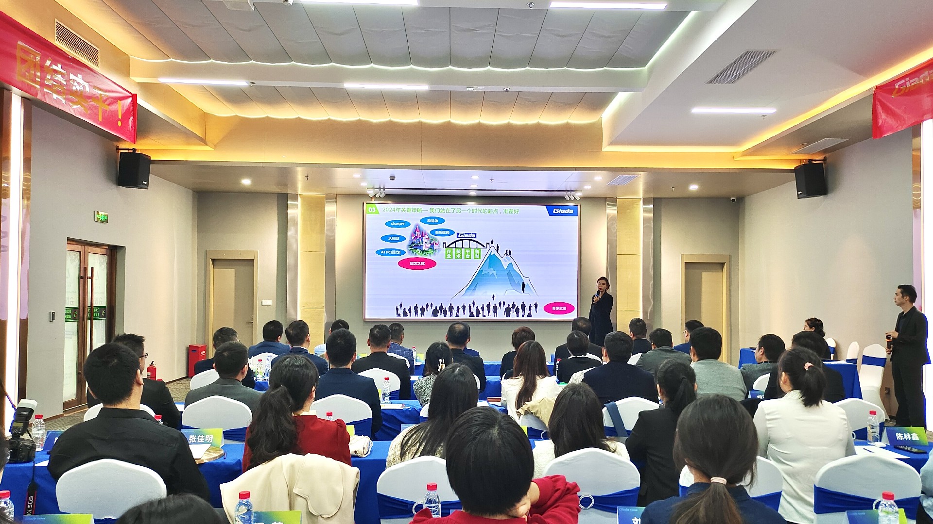 會議開始后,兩位國際/國內(nèi)營銷中心負(fù)責(zé)人首先對2023年度經(jīng)營工作作總結(jié)報告,并著重介紹2024年度銷售目標(biāo)與重點工作。