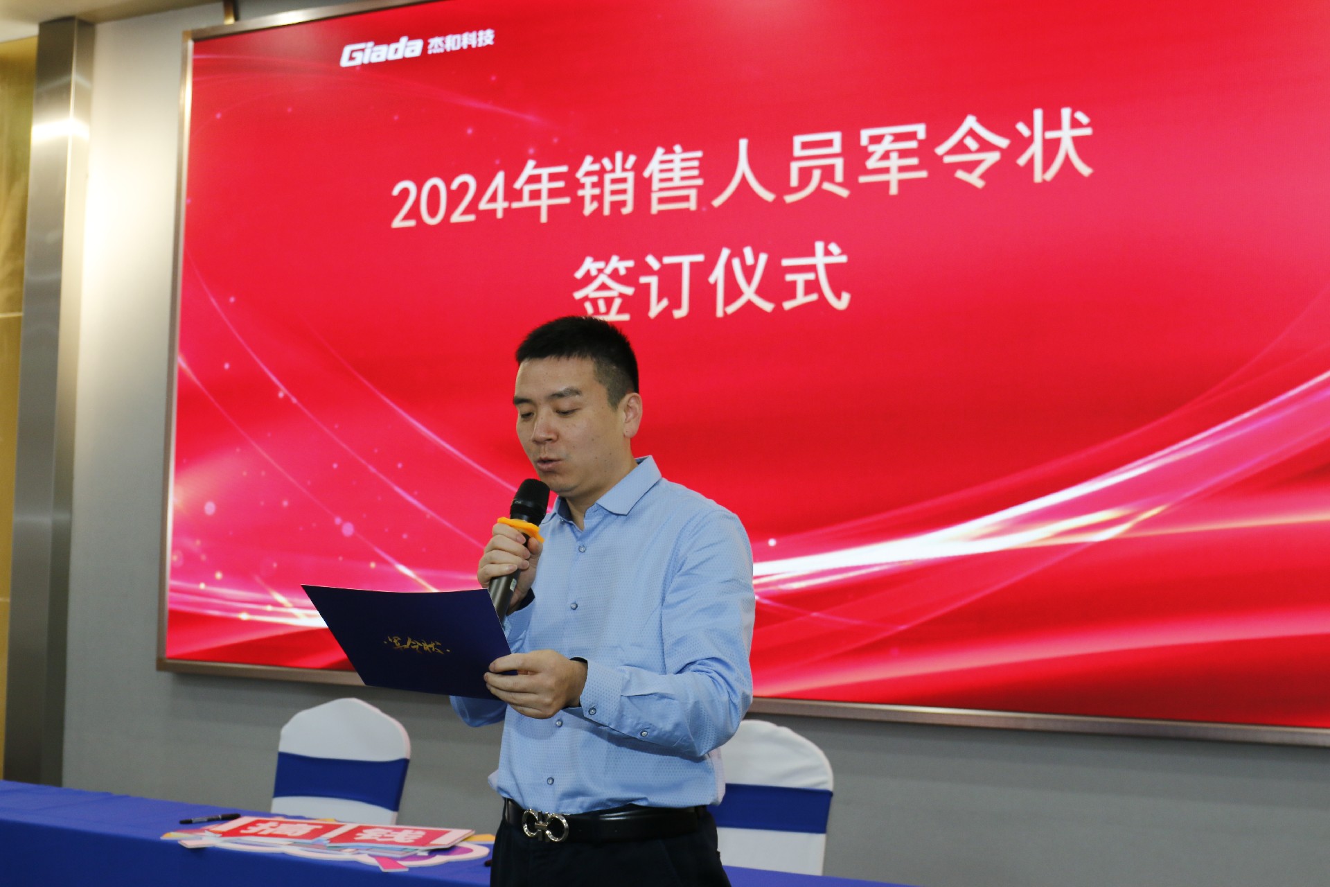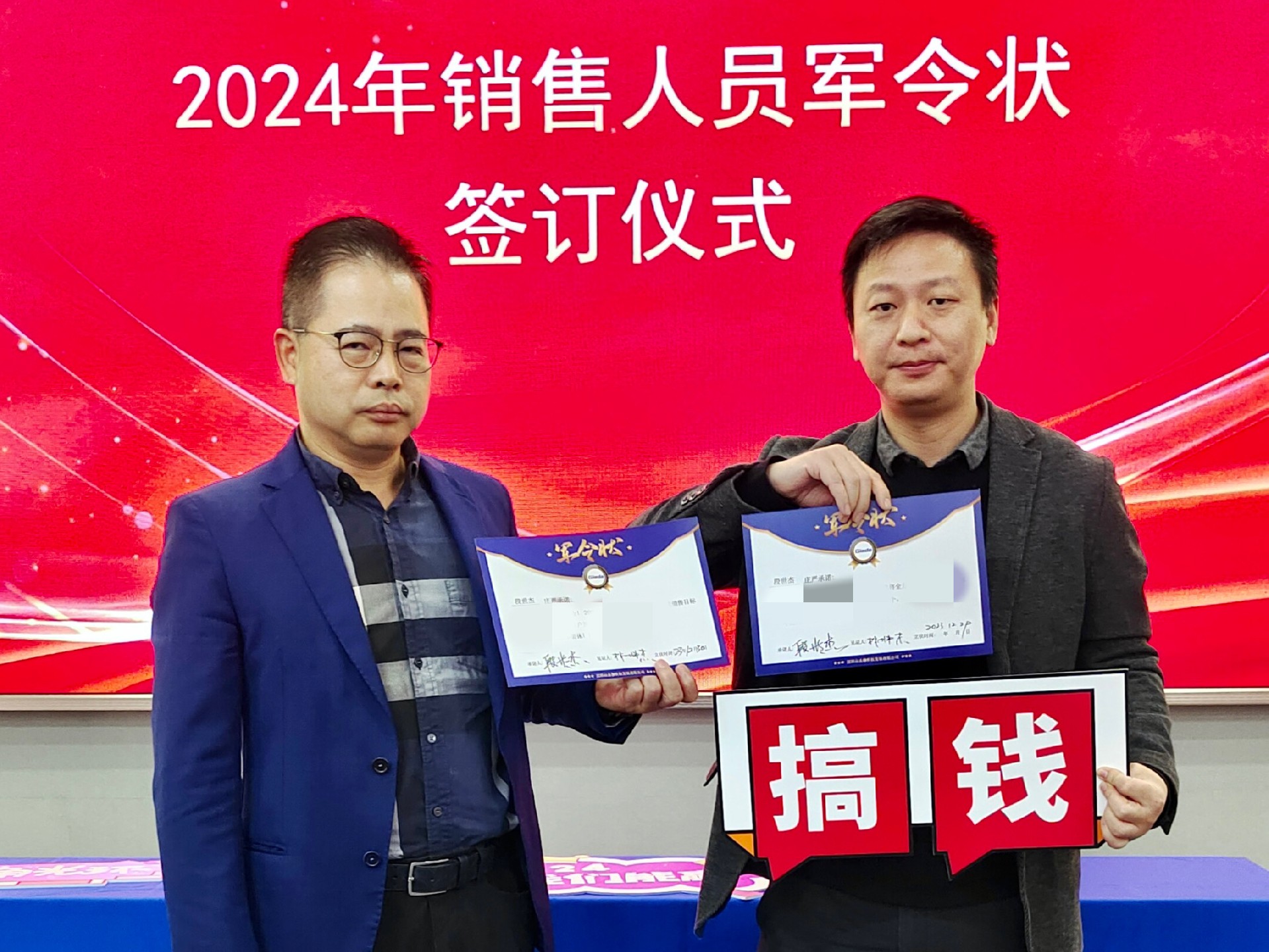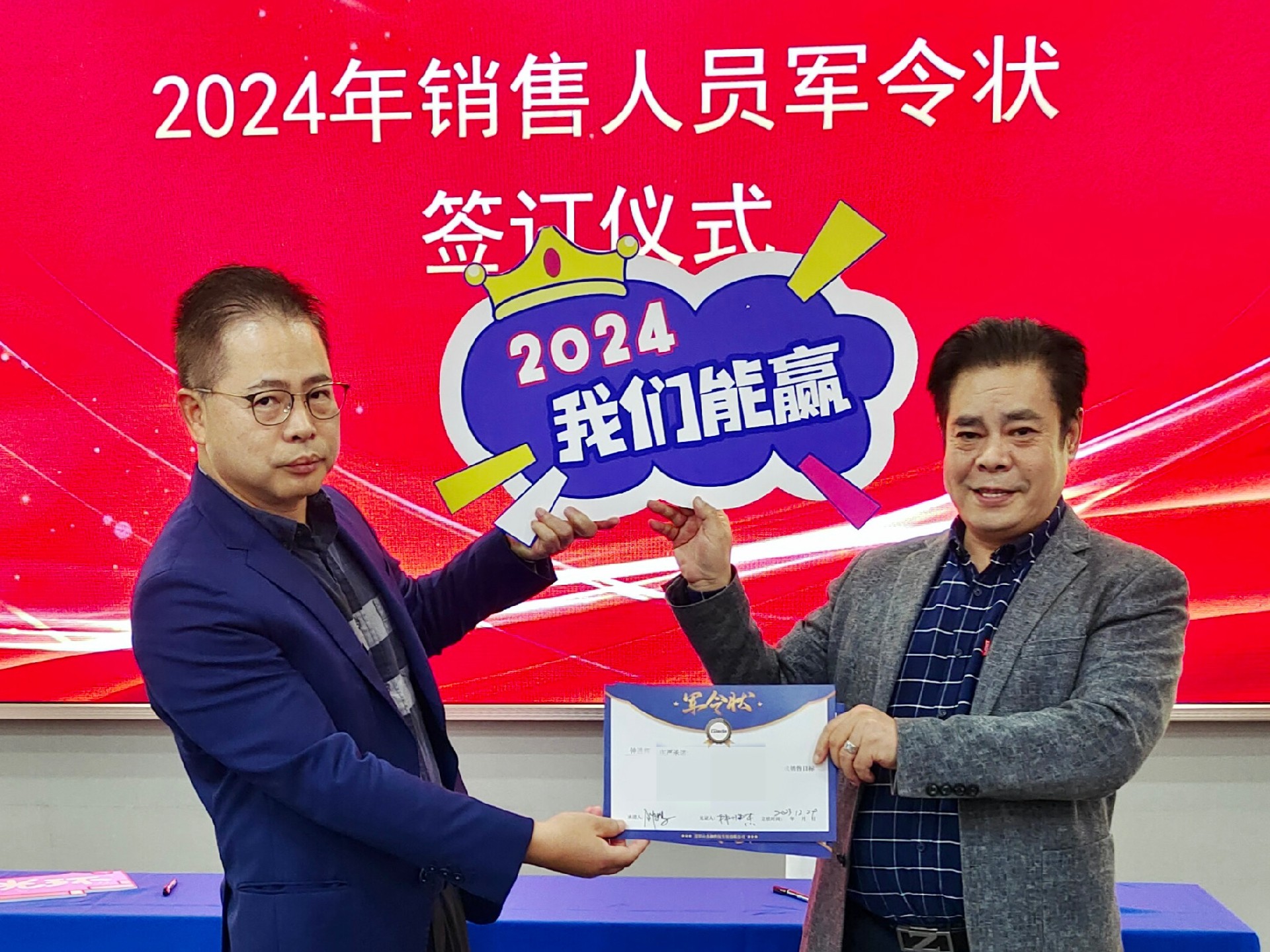 2024公司年度戰(zhàn)略目標(biāo)確立,言出必行,使命必達(dá),國際/國內(nèi)銷售團(tuán)隊為了共同的目標(biāo)開始軍令狀簽約儀式。一紙軍令狀,是杰和科技與銷售人員的雙向承諾,是壓力,更是動力。是不破樓蘭終不還的決心,更是春風(fēng)得意馬蹄疾,一日看盡長安花的期待。