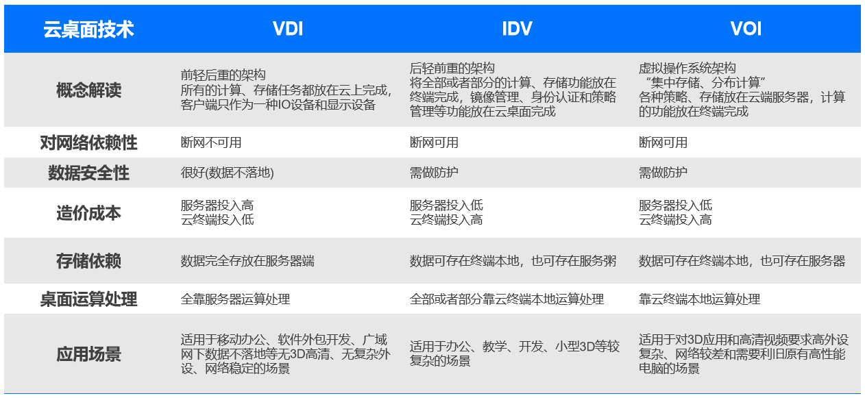 針對傳統(tǒng)PC存在的運維成本高、數(shù)據(jù)保密性差、辦公設備攜帶不便等眾多弊端,辦公、教育等行業(yè)對應用模式提出了新的需求,云桌面技術(shù)+云終端的模式應運而生。云終端通過特定的通信協(xié)議(通常是指VDI、IDV、VOI、RDS、SPICE等云桌面技術(shù)通信協(xié)議)來連接云端的系統(tǒng)桌面并顯示到前端來,并將云終端的輸出輸入數(shù)據(jù)又重新定向傳輸?shù)皆品掌魃?,實現(xiàn)交互式操作,達到與電腦一致的體驗效果。