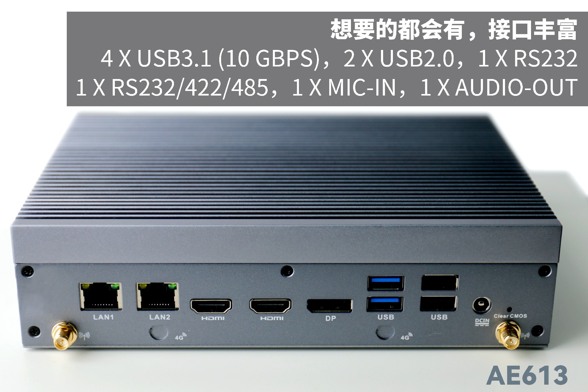 杰和AE613支持Windows 11 、Linux Ubuntu系統(tǒng);擁有豐富接口:雙千兆自適應(yīng)RJ45網(wǎng)口,4 x USB3.1 (10 Gbps),2 x USB2.0,1 x RS232,1 x RS232/422/485,1 x MIC-IN,1 x AUDIO-OUT,幫助用戶實(shí)現(xiàn)更多功能擴(kuò)展;并且支持Wi-Fi 6E,可以提供更高的帶寬和更少的干擾,支持對(duì)無(wú)線網(wǎng)絡(luò)有特定需求場(chǎng)景的應(yīng)用。