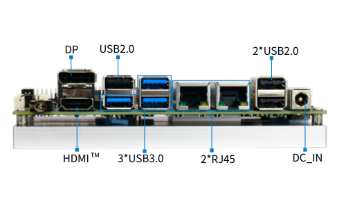 最大可支持32GB內(nèi)存,配備2個(gè)SO-DIMM DDR4插槽,支持1個(gè)M-Key M.2(2280)插槽用于PCIe SSD、1個(gè)2.5英寸SATAIII接口,1個(gè)eMMC5.1(可選)以增加存儲(chǔ)。