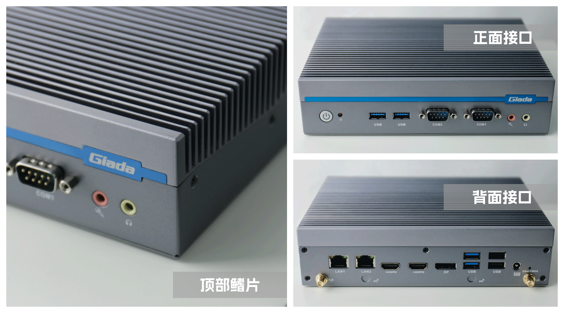嵌入式整機AE613外包裝采用環(huán)保材料設(shè)計,內(nèi)部配備適配器、AC線、天線棒、螺絲包,滿足通用需求,整機外觀機殼頂面采用一體式鋁板增高的鰭片散熱設(shè)計,整機結(jié)構(gòu)采用全鋁設(shè)計保證散熱與抗壓性,通過杰和特有無風扇靜音散熱設(shè)計使整體散熱效果非常優(yōu)秀,同時營造出極致安靜的工作和使用環(huán)境,無噪音,更防塵。