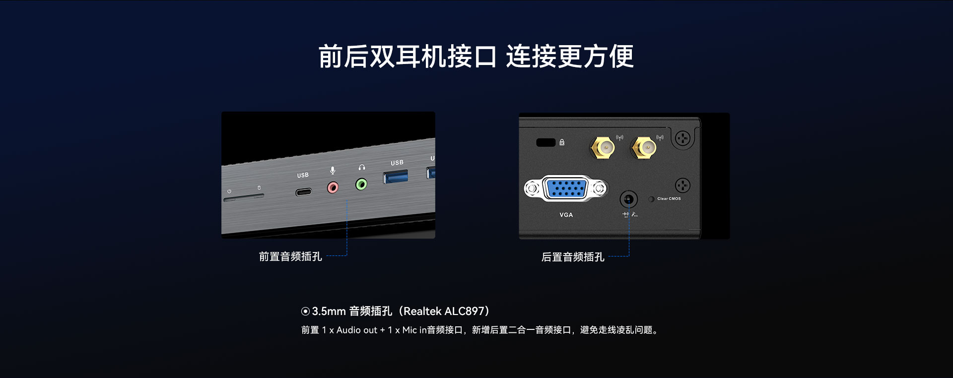 | I/O | 接口 | 3 x USB3.2 Gen2 ,2 x USB3.2 Gen1, 3 x USB2.0,1 x Type-C 1 x RS232 |