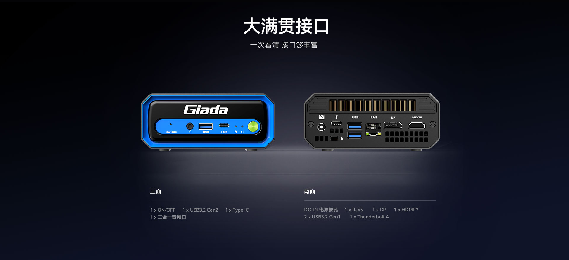 | I/O | 接口 | 1 x USB Type-C3.2 Gen2, 1 x USB3.2 Gen 2 2 x USB 3.2 Gen 1, 1 x Thunderbolt 4 1 x 二合一音頻口 |