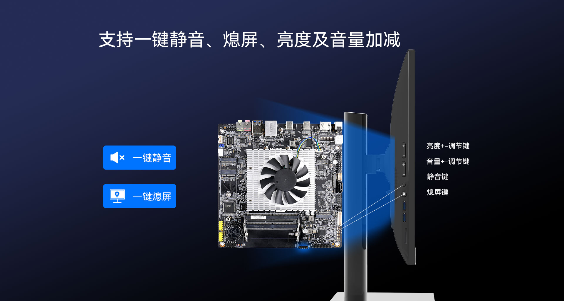 支持一鍵靜音、一鍵熄屏、音量加減、亮度加減