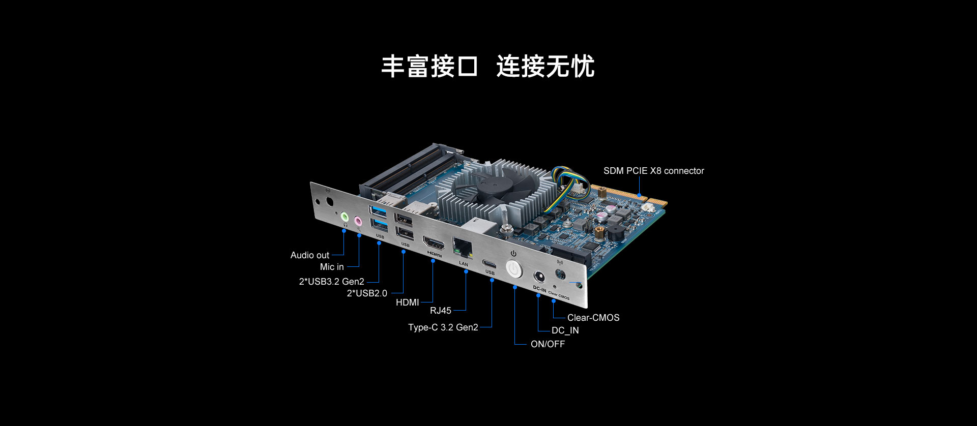 | 接口 | 1 x M.2 (2242/2280) 擴(kuò)展PCIe/SATA SSD | |
