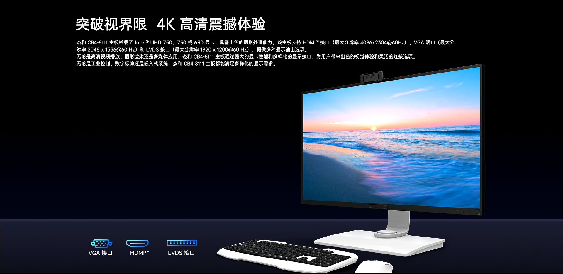 | 外部I/O | 接口 | 1 x HDMITM(Max.4096 x 2160 @60 Hz) 1 x VGA (Max.2048 x 1536 @60 Hz) 4 x USB3.2 Gen1 1 x RJ451 x TF卡槽 1 x MIC-IN, 1 x AUDIO-OUT, |